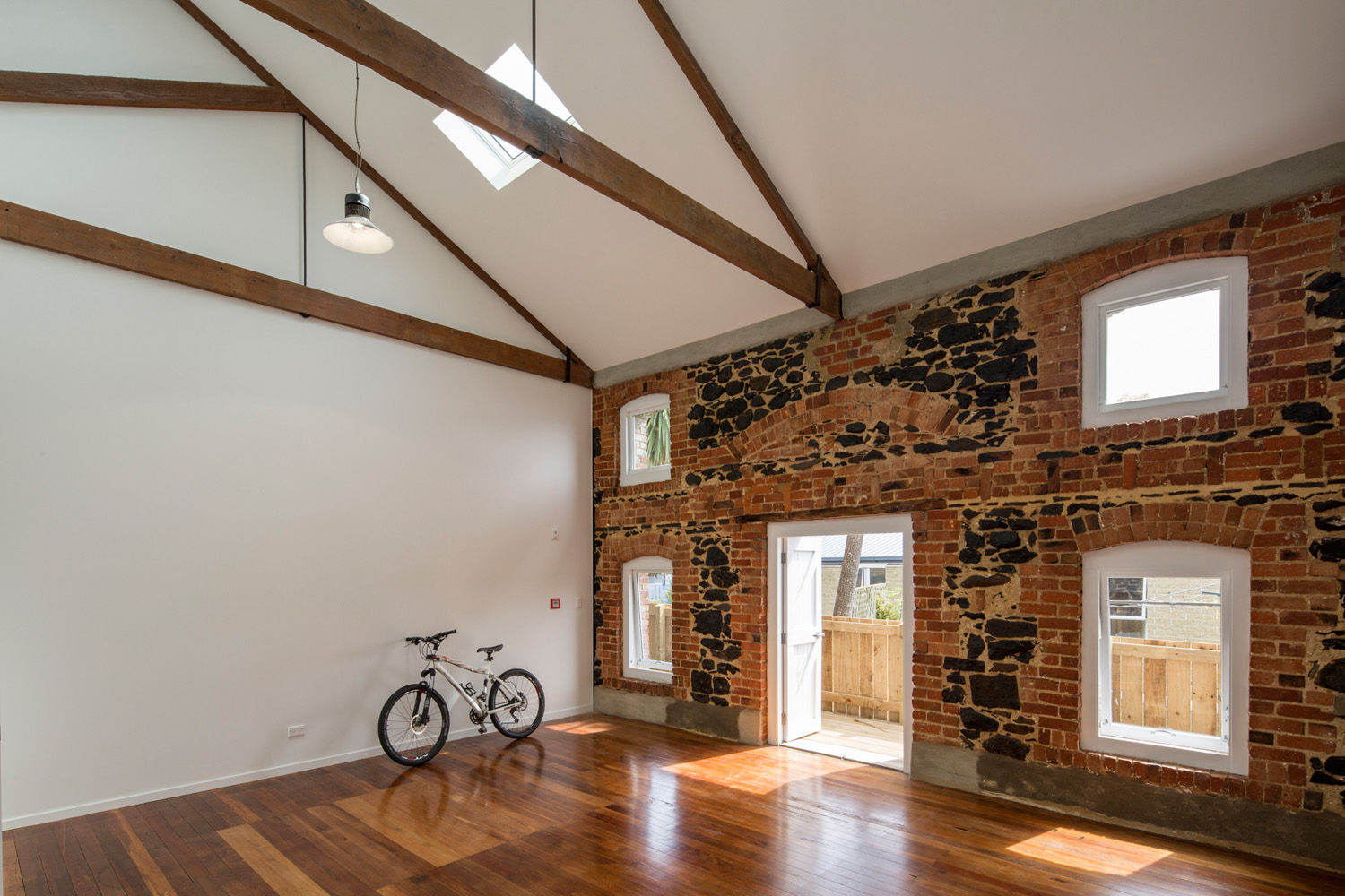 All new work was to consider restoration of heritage features to enhance the building character and create interiors that allowed reversibility of work for future economic reuse and sustainability. The building was to be upgraded with seismic strengthening, disabled access and facilities. New architecture was to be distinguished from existing heritage architecture. Interior visible retention of timber floors, beams, posts, trusses and stone walls were to be considered together with a modern layout for residential use. Insulation, heating and ventilation were to be discretely integrated to meet building code requirements. Any interior and exterior intervention of the existing heritage fabric was to be approved by Council, Heritage New Zealand and the client who owned the property.